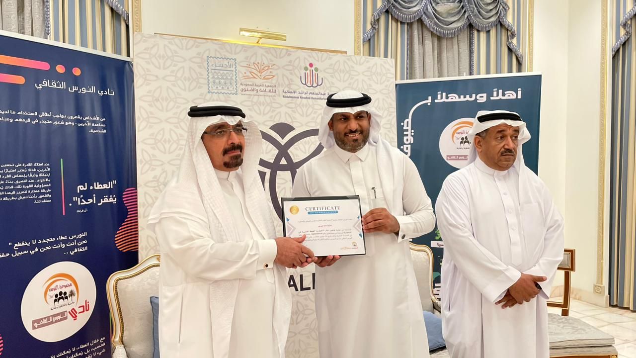 أما في ختم حفل التدشين لأنطولوجيا القصة القصيرة في السعودية تم تقديم شهادة شكر وتقدير من نادي النورس الثقافي للأستاذ خالد اليوسف، ومن جهته منح الضيف أ.خالد اليوسف المشاركين في الكتاب من أبناء وبنات الأحساء بأن يقوموا بتدشين الكتاب وتوزيعه على الحضور، و الذي تزاحم لأخذ النسخ ثم دعا الأستاذ أ.ناصر الجاسم مقدم الحفل الحضور لتناول وجبة العشاء على شرف أ.خالد اليوسف.