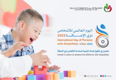 تشارك الجمعيةالخيرية لصعوبات التعلم في الاحتفاء باليوم العالمي للأشخاص ذوي الإعاقة 3ديسمبر تحت شعار “متحدون في تحقيق أهداف التنمية المستدامة للأشخاص ذوي الإعاقة “حيث ستنظم الجمعية ندوة علمية ( متحدون لتنمية مستدامة لذوي الإعاقة ) يشارك فيها عدد من المختصين ،كما ستشارك في عدد من المناشط والفعاليات التي تقيمها الجهات ذات العلاقة ،والفرق التطوعية التي تعمل تحت مظلة الجمعية ، صرحت بذلك الأستاذة فردوس أبوالقاسم المدير التنفيذي ، مبينة بأن هذه المناسبة هي فرصة سانحة لإبراز الجهود التي تقدمها الجمعية لذوي صعوبات التعلم على وجه الخصوص، ولذوي الإعاقة على العموم منطلقًا من أهدافها بتنمية مهارات و قدرات ذوي صعوبات التعلم، وتعزيز الشراكة الاستراتيجية والمجتمعية مع الجهات ذات العلاقة ، وأضافت أبو القاسم “إن شعار هذا العام يتوائم مع حجم جهود المملكة لتمكين ذوي الإعاقة من حقوقهم ، ومؤكدة بأن التنمية المستدامة تهدف؛ لتوفير حياة كريمة للجميع وتسعى لتحقيق مستقبل أفضل بحلول عام .2030م وهذا أيضا يتزامن مع اكسبو و رؤية المملكة .2030م ، حيث تضمنت الرؤية هدفًا استراتيجيًا يعنى بتمكين ذوي الإعاقة من الحصول على فــرص عمل مناسبة وتعليم يضمن اســتقلاليتهم وانـدماجهــم بوصفهم عنـــاصر فاعــلة فــي الــمجتـمــع.