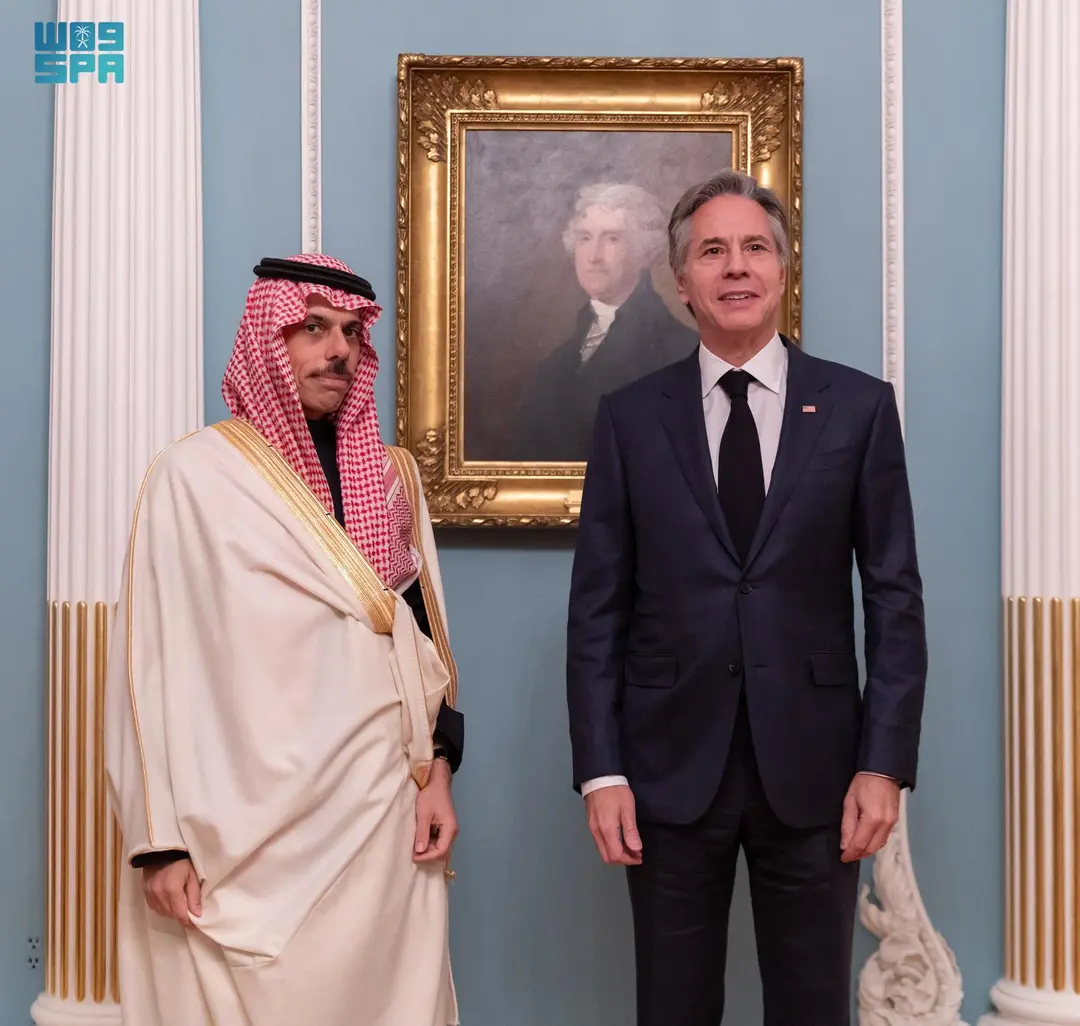 التقى صاحب السمو الأمير فيصل بن فرحان بن عبدالله وزير الخارجية، اليوم في واشنطن، معالي وزير خارجية الولايات المتحدة الأمريكية أنتوني بلينكن.