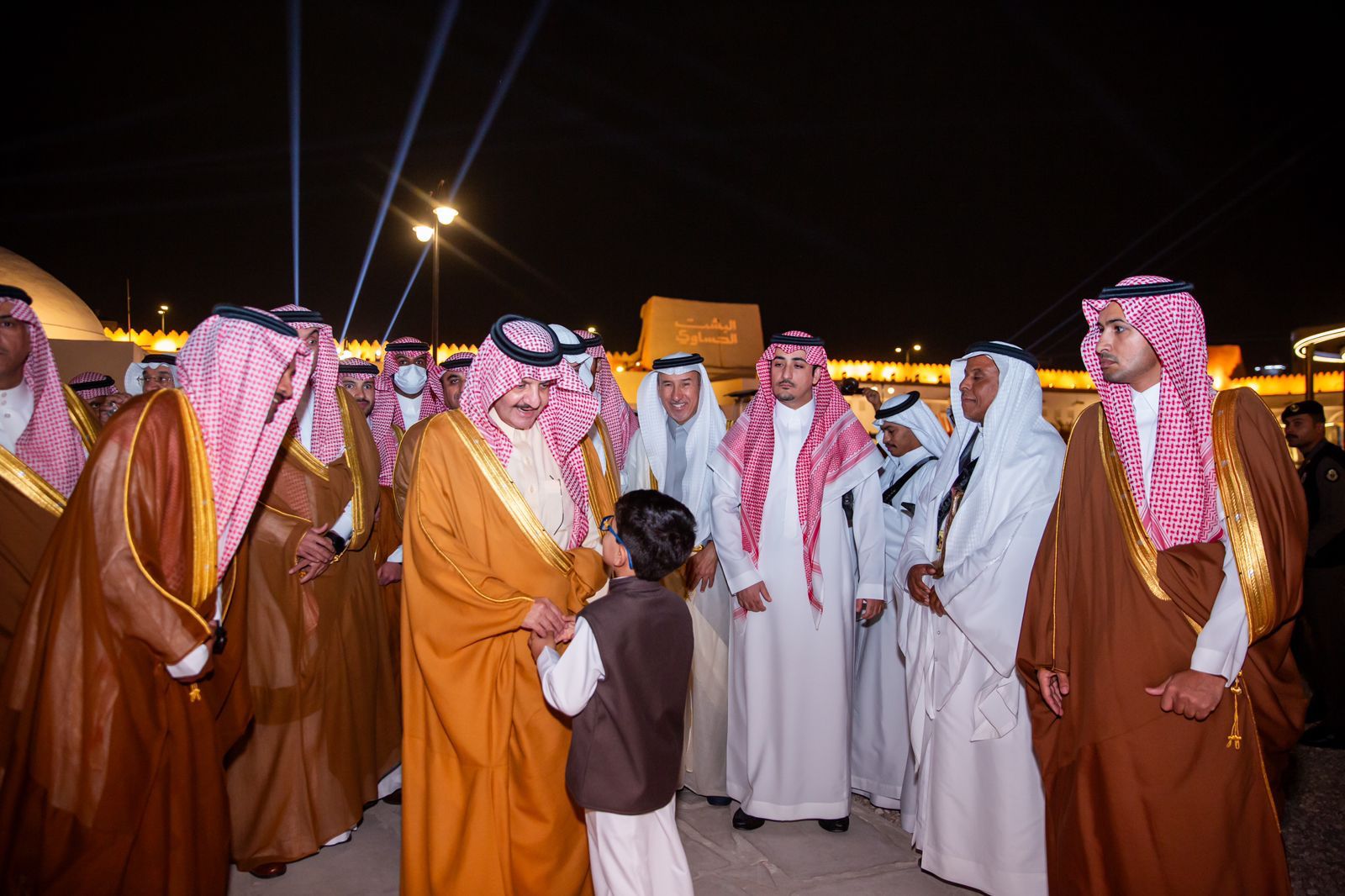 دشن صاحب السمو الملكي الأمير سعود بن نايف بن عبدالعزيز أمير المنطقة الشرقية بحضور صاحب السمو الملكي الأمير سعود بن طلال بن بدر محافظ الأحساء مساء اليوم الأربعاء النسخة الثانية من مهرجان البشت الحساوي الذي تنظمه هيئة التراث في قصر إبراهيم بالأحساء خلال الفترة من 14-22 ديسمبر 2023م.