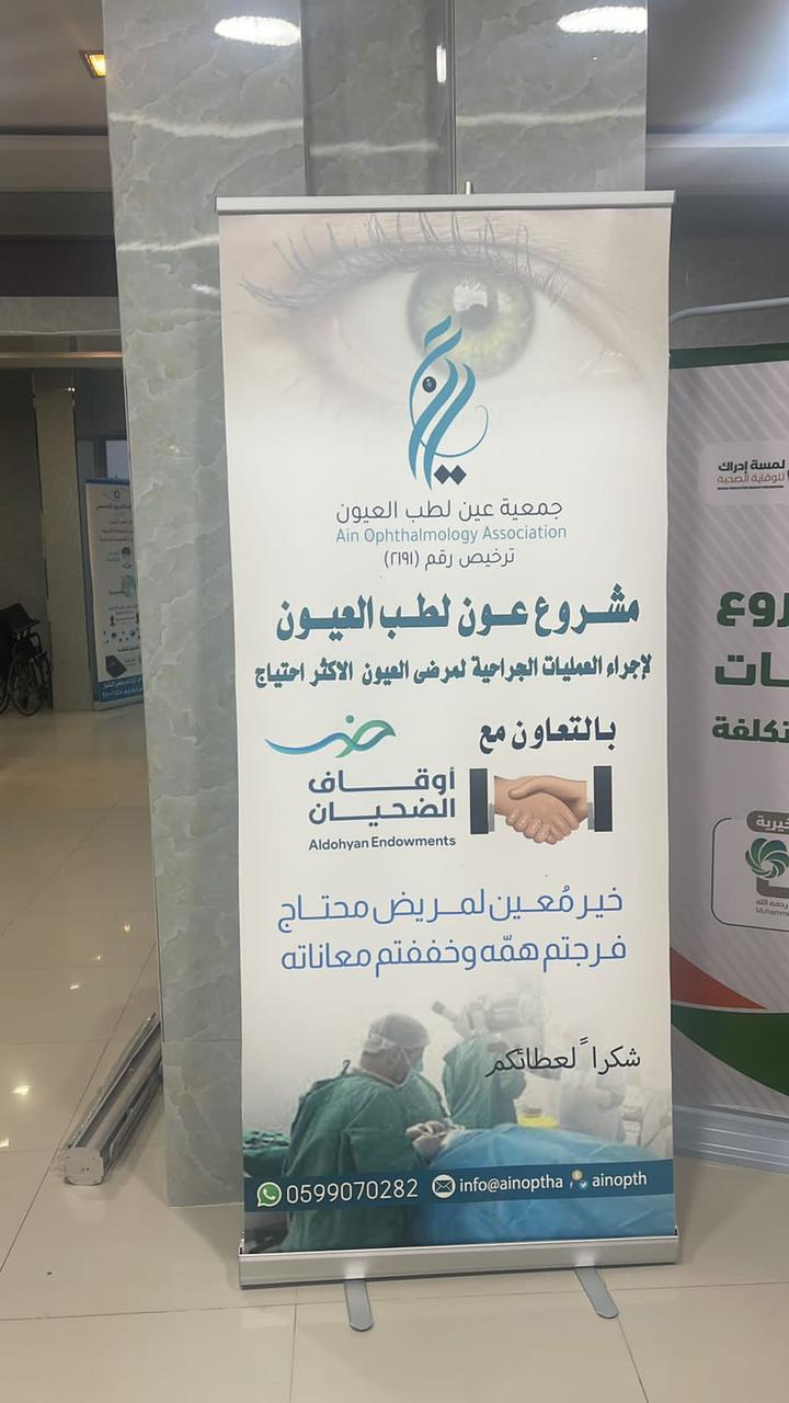 اطلقت جمعية عين لطب العيون مشروع عون لطب العيون الذي يدعمه أوقاف الضحيان والمشروع يهدف إلي إجراء العمليات الجراحية الذي يستهدف (المرضى العيون الأكثر احتياجاً ) وذلك بدعم سخي من أوقاف الضحيان .