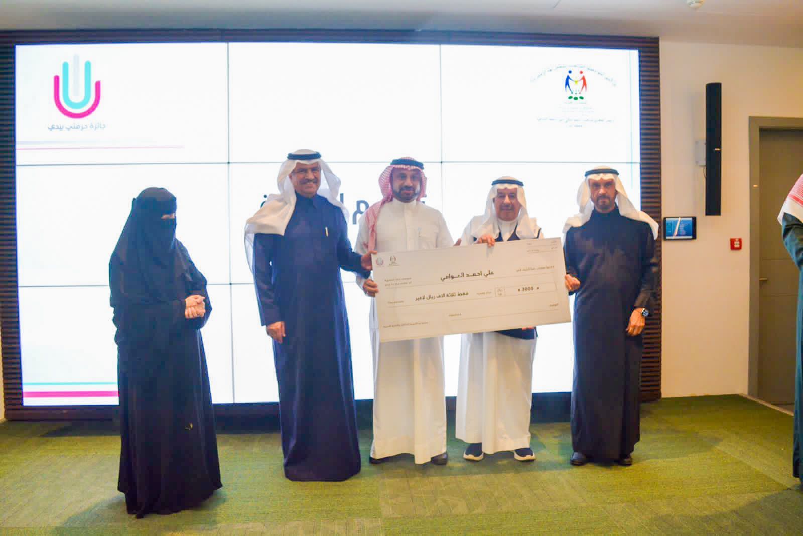 وشهد الحفل تكريم الفائزين في الجائزة حيث فاز بالمركز الأول عبدالله الجعيدان ، والمركز الثاني علي الحمود ، والثالث علي العوامي ، إضافة لتكريم لجنة التحكيم للجائزة وهم الأستاذه أماني العامودي والدكتورة مي الجامع والأستاذه نجلاء الرميحي، وتكريم الداعمين وهم شركة سبكيم وجامعة الإمام عبدالرحمن بن فيصل .
