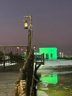 ثم على بعد خطوات من البيئة التهامية بانواع البيوت في تلك البيئة من العشة والعريش ستجد (البيت الفرساني) ذو اللون الابيض الناصح الذي يقع وسط البحر ويرتبط مع القرية تراثية بواسطة جسر، ويعد هذا البيت تجسيداً حياً للبيئة البحرية في جزيرة الفرسان حيث البحر واللؤلؤ والأصداف