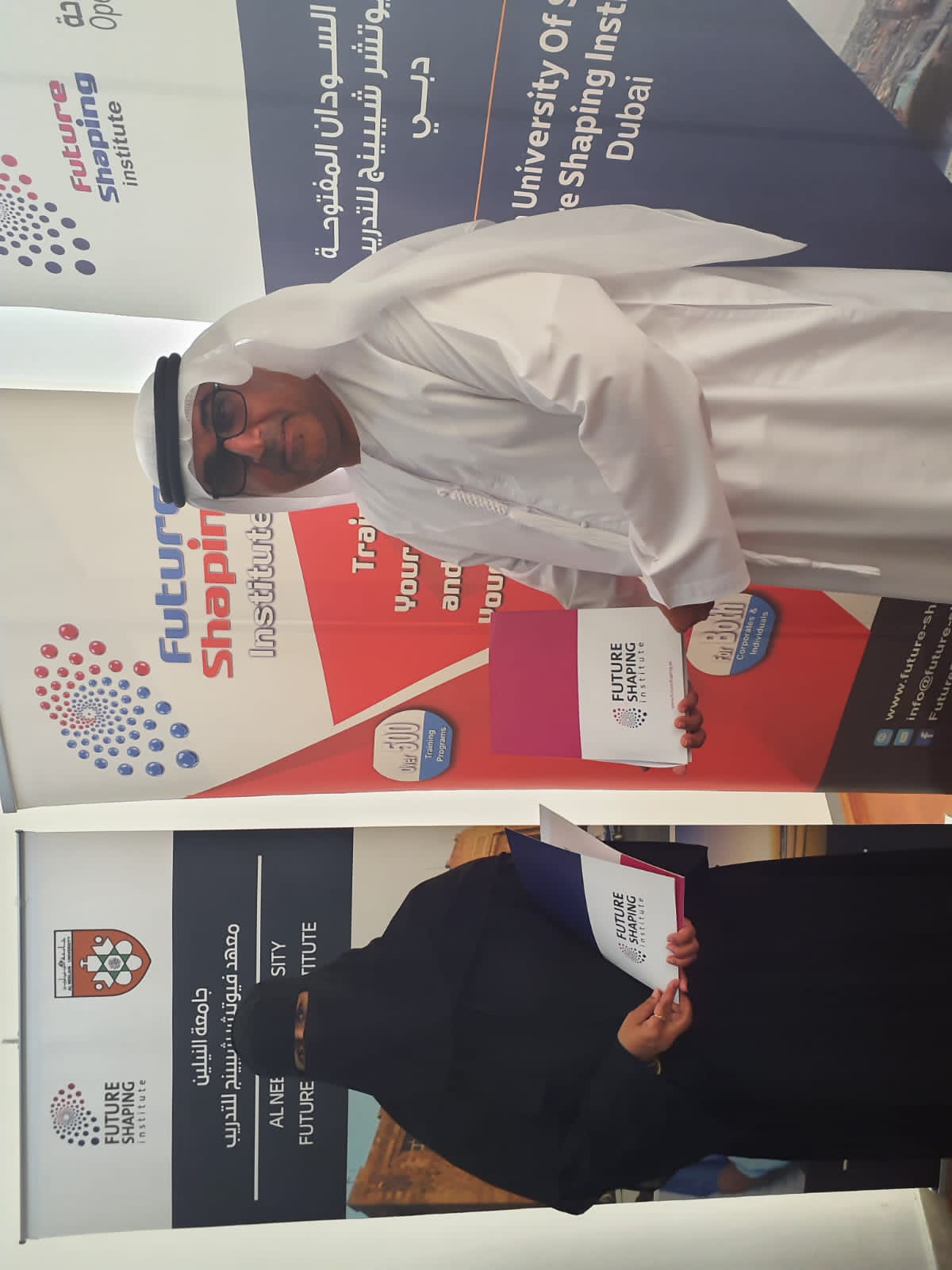 وقعت الأستاذة نورة بنت علي العاصم رئيس مجلس إدارة جمعية ارماء للتنمية البشرية مع سعادة الدكتور عبدالكريم احمد العماد صاحب معهد فيوتشر فى دبي مذكرة تفاهم
