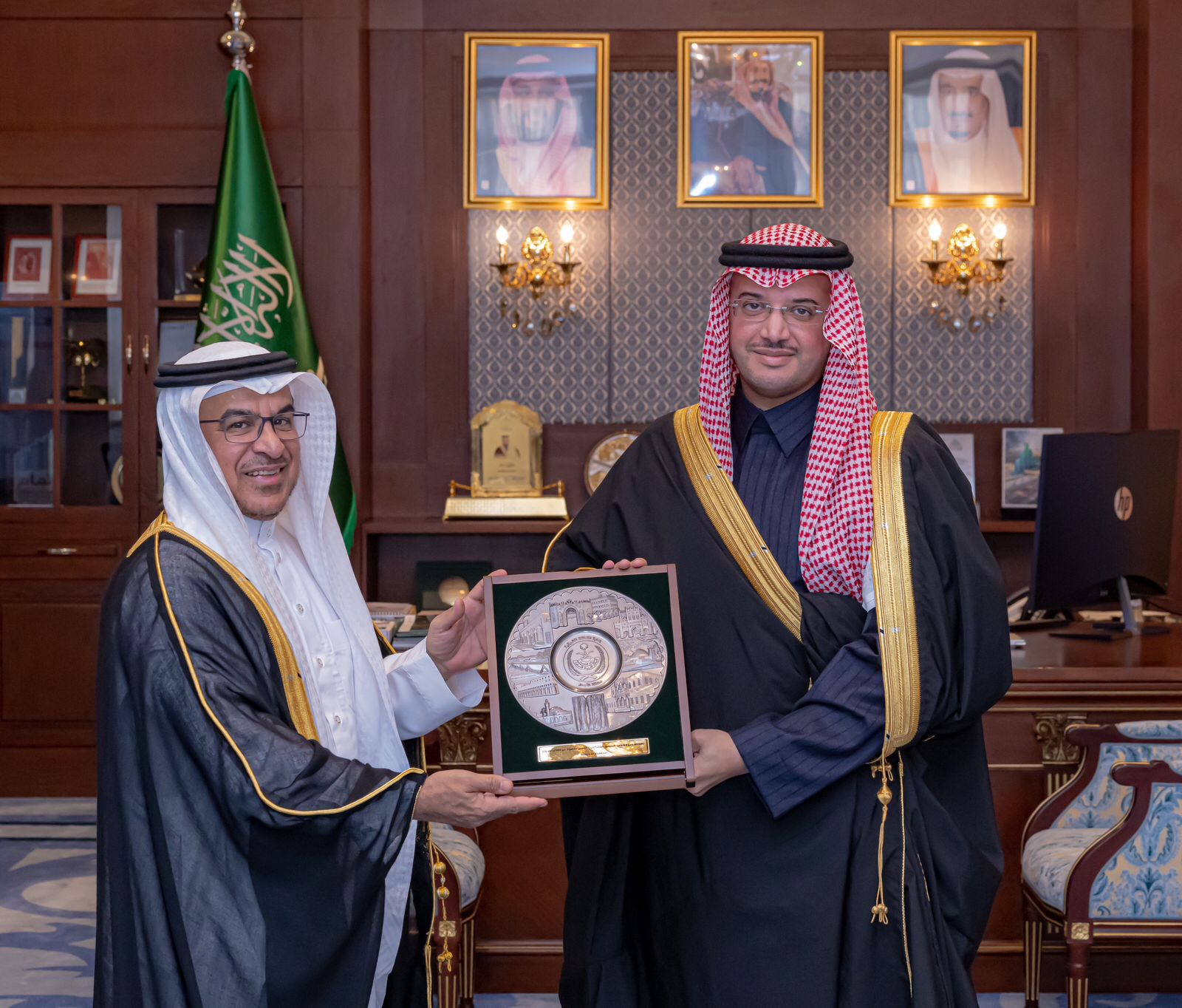 وكرم سموّه خلال اللقاء الدكتور فؤاد ال الشيخ مبارك نظير الجهود التي بذلها خلال فترة رئاسته للمؤسسة، متمنيًا له التوفيق والسداد في منصبه الجديد بشركة المياه الوطنية.
