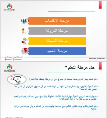 نفذت الجمعية الخيرية لصعوبات التعلم اللقاء التوعوي (عن بعد) تحت عنوان (مراحل التعلم لدى التلاميذ ذوي صعوبات التعلم) المنظم ضمن برنامج غراس التوعوي قدمه الأستاذ/ محمد بن عبدالله القباني- مختص ومدرب في مجال صعوبات التعلم والذكاء الحدي- بحضور عدد كبير من المعلمين والمعلمات المتخصصين والتربويين والمهتمين، حيث تناول عدة محاور حيث أكد على أن مراحل التعلم لها خصائص متعددة، وأن عملية التعلم تحدث على شكل مراحل يمكن مشاهدة وقياس كل مرحلة والتوفيق بين طريقة التدريس، وبين أن هناك تفاوتًا بين التلاميذ من حيث إن الخلفية التعليمية المسبقة ،أو محدودة التعليم ،وكل مرحلة تمثل مستوى من مستويات المعرفة.