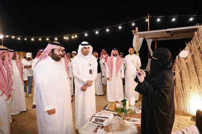 واطلع سموه على أقسام الفعالية، مستمعًا لشرح مفصل من مدير فرع هيئة التراث بالمنطقة فيصل خواجي حول الفعالية وما تتضمنه من الأنشطة التعريفية بالحرف اليدوية المرتبطة بتراث جازان البحري، والنشاطات الهادفة لتجسيد العادات والتقاليد في جازان، وحياة وقصص البحارة والحياة البحرية الاجتماعية والألعاب الشعبية السائدة قديمًا.