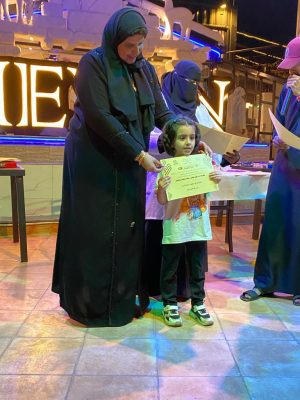 ثم تكريم المشاركين والداعمين وانتهت بمخرجات متميزه كان فيها صوره واضحه لمواهب الاطفال وابداعهم،،