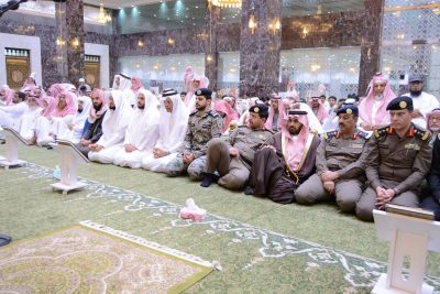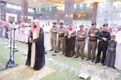 تقدم سعادة محافظ محايل الأستاذ محمد بن فلاح القرقاح.المصلين اليوم في صلاة الاستسقاء بحضور عدد من القيادات الأمنية