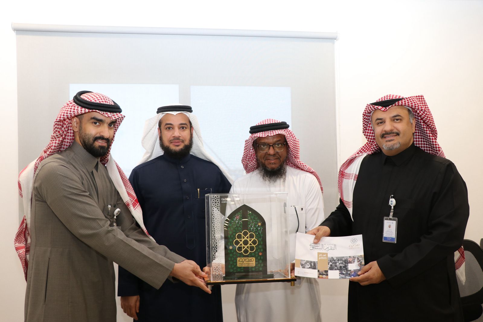 وهدفت الزيارة لتكريم التجمع نظير الجهود التي بذلت في مبادرة ” فإنك بأعيننا” التي أطلقتها جمعية هداية مؤخرا مستهدفة نشر القيم الإسلامية من خلال تعزيز الجوانب الإيجابية لدى الفئات المستهدفة، وتم خلال اللقاء استعراض التقرير السنوي لجمعية هداية والذي تضمن أبرز الانجازات التي حققتها الجمعية خلال العام المنصرم وجهود الإدارات المختلفة مثل إدارتي الدعوة وتوعية الجاليات والقسم النسائي من أجل تحقيق رسالة الجمعية .