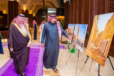 وقد المبرزي لسموه شرحاً عن محتويات المعرض من الأعمال الفنية والتي تحكي تطور التراث العمراني في المملكة بجميع مناطقه .
