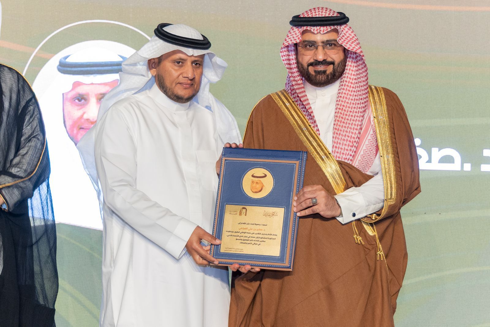 وشاهد سعادته والحضور مشهدا قصيرا يعقبه أوبريت الراية الخضراء ، ثم عرضا مسجلا لمشاعر مضيئة وهي عبارة عن كلمات موجزة لأعضاء مجلس الإدارة ، تخللتها كلمة للتاريخ قدمها الدكتور خالد الجريان ، وقصيدة فصحى قدمها الدكتور الشاعر عبدالله الخضير وقصيدة أخرى شعبية قدمها الشاعر نبيل بن عاجان ، وفي ختام الحفل كرم سعادته الرعاة وعدد من منسوبي نادي الأحساء الأدبي سابقاً والذي منهم الدكتور صغير العجمي المشرف على الأنشطة والفعاليات بالنادي وفريق العمل الذين كان لهم الدور الكبير في أنشطة وأعمال النادي خلال الفترة السابقة.