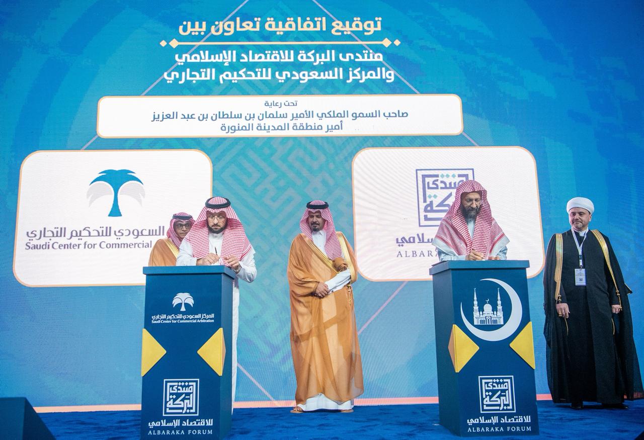 وفي نهاية الحفل، شهد سمو أمير منطقة المدينة المنورة، مراسم توقيع مذكرتي تفاهم ثنائية بين منتدى البركة للاقتصاد الإسلامي مع المركز السعودي للتحكيم التجاري، والإدارة الدينية لمسلمي روسيا الاتحادية، والتي تستهدف المساهمة في تطبيق أهداف المنتدى لتحقيق الريادة في تعزيز فكر الاقتصاد الإسلامي وتطويره بمفهومه الشامل، وتبادل الخبرات والمعرفة وإنشاء بيئة آمنة جاذبة للاستثمار المحلي والأجنبي، إلى جانب تطوير آفاق التعاون وتنظيم الفعاليات والمؤتمرات الدولية والمحلية المشتركة، إضافة إلى تبادل الخبرات والإصدارات ونشر الاقتصاد الإسلامي وتطوير تطبيقاته.