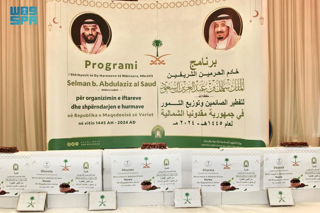 دشنت وزارة الشؤون الإسلامية والدعوة والإرشاد، ممثلة بالملحقية الدينية بسفارة المملكة في البوسنة والهرسك، برنامجي هدية خادم الحرمين الشريفين لتوزيع التمور وتفطير الصائمين خلال شهر رمضان المبارك لعام 1445هـ، في فندق الكسندر بالاس في العاصمة سكوبيه بمقدونيا الشمالية، بحضور سفير خادم الحرمين الشريفين في ألبانيا فيصل بن غازي حفظي، ورئيس العلماء مفتي الديار المقدونية الشيخ شاكر فتاحو، ورئيس مجلس الشورى في الاتحاد الإسلامي الأستاذ نسيب دميري، وعدد من المفتين والشخصيات الإسلامية المقدونية .