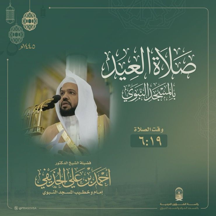 أما في المسجد النبوي، سيقوم فضيلة الشيخ الدكتور ⁧أحمد الحذيفي.