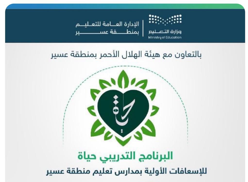 اعلن فرع هيئة الهلال الاحمر بمنطقة عسير بالتعاون المشترك مع قسم الشؤون الصحية المدرسية بتعليم منطقة عسير عن انطلاق برنامج “حياة” للإسعافات الأولية بمدارس المنطقة وذلك بتوجيهٍ سامي من مقام صاحب السمو الملكي الامير تركي بن طلال بن عبدالعزيز امير منطقة عسير حفظه الله.
