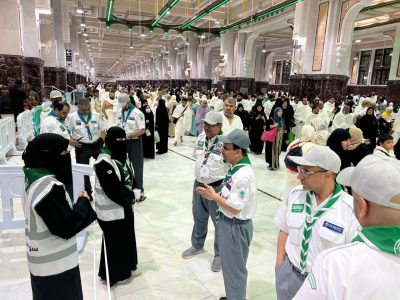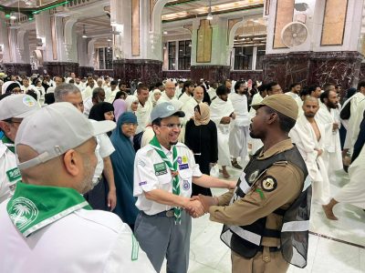 جاء ذلك خلال جولة قام بها اليوم مع المُدير العام للتعليم بمنطقة مكة المكرمة، المشرف على الخدمات الكشفية التي تقدم للمعتمرين بالمسجد الحرام الأستاذ عبدالله بن سعد الغنام، شملت مركز بادر الكشفي للأعمال التطوعية، وكشافة وزارة التعليم المتطوعين مع الهيئة العامة لشؤون الحرمين، وشهد الجهود المبذولة التي تقوم بها كشافة التعليم في مجال دفع العربات، و تنظيم المسارات من والى صحن المطاف، كما التقى فتيات كشافة التعليم في التطوع الصحي، والجوالة المشاركين في التنظيم بمنطقة المسعى والمساندين للأمن العام.