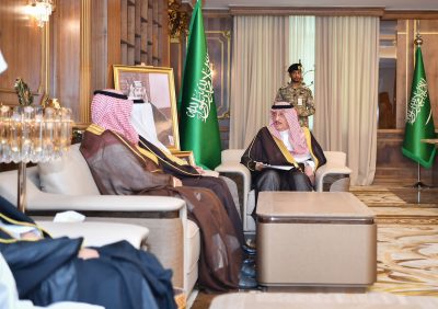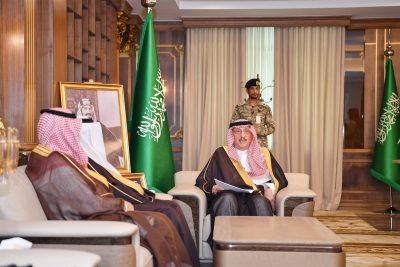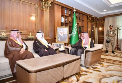 استقبل صاحب السمو الملكي الامير محمد بن ناصر بن عبدالعزيز أمير منطقة جازان بمكتبه اليوم، وكيل وزارة البيئة والمياه والزراعة للزراعة المهندس أحمد العيادة والوفد المرافق له.