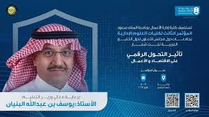 تنظم جامعة الملك سعود ممثلة بكلية إدارة الأعمال يومي الثلاثاء والأربعاء القادمين المؤتمر الثالث لكليات العلوم الإدارية بجامعات دول مجلس التعاون لدول الخليج العربية تحت شعار “تأثير التحول الرقمي على الاقتصاد والأعمال”.