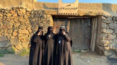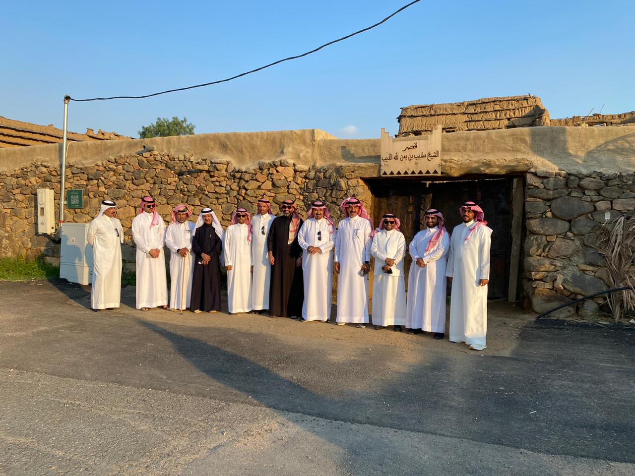 حيث كان في في مقدمة المستقبلين الشيخ عبدالعزيز الذيب والمنشد أبوفارس القحطاني والمنشد عبدالرحمن الشهراني وتم التعريف وبعض من أهالي القرية والمهتمين بالتراث العمراني حيث تم عرض نبذه عن الأعمال التي يقومون بها خلال هذه الفترة وماقاموا به خلال السنين الماضية في إعادة القصور والبيوت والمساجد والطرق المؤديه إليها