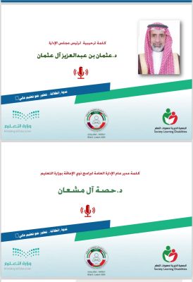 نظمت جمعية صعوبات التعلم بالتعاون مع الإدارة العامة لبرامج ذوي الإعاقة بوزارة التعليم الندوة العلمية (انطلاقة.. تعلم) نحو تعليم عالي بمناسبة الاحتفاء باليوم الخليجي لصعوبات التعلم 2024 وذلك يوم الأحد 12 مـايـو 2024 (عن بعد) بحضور عدد كبير من المختصين والمهتمين وأولياء الأمور ، وتأتي الندوة لرفع الوعي المجتمعي عن الخدمات المقدمة لذوي صعوبات التعلم ، فقد أكد الدكتور عثمان عبدالعزيز آل عثمان رئيس مجلس إدارة الجمعية في كلمته الترحيبية على التعاون الوثيق والمثمر بين الجمعية ووزارة التعليم وجميع القطاعات الحكومية والخاصة والأفراد من أجل الوصول والحصول على أفضل الخدمات المتميزة التطوعية لذوي صعوبات التعلم بناءً على توجيهات وتعليمات سيدي صاحب السمو الملكي الأمير خالد بن بندر بن عبدالعزيز مستشار خادم الحرمين الشريفين الرئيس الفخري للجمعية وبإذن الله تعالى يستمر العطاء والتقدم لخدمة البلاد والعباد ابتغاء رضا رب العالمين.
