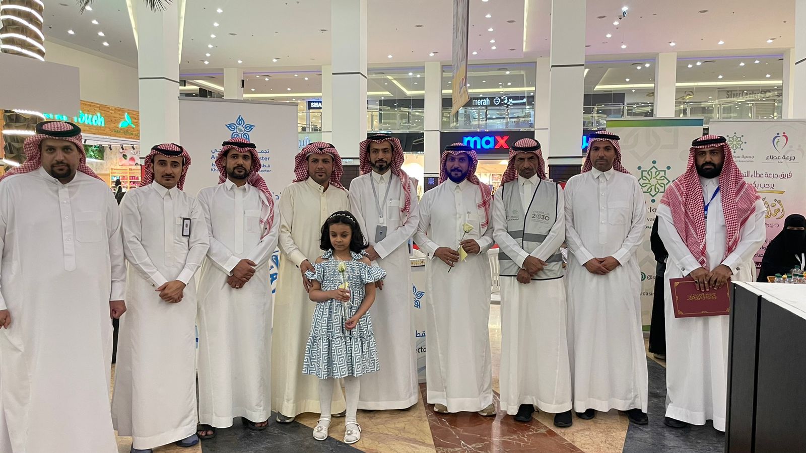 وفي نهاية الإفتتاح تم تكريم الجهات المشاركة وكان منهم فريق جرعة عطاء التطوعي والمرخص تحت مضلة جمعية سواعد الوطن التابع لوزارة التنمية والموارد البشرية كونهم فريق لهم دور في مساندة وتقديم الدعم النفسي والمعنوي لفئة المصابين بالسرطان عافانا الله وإياكم