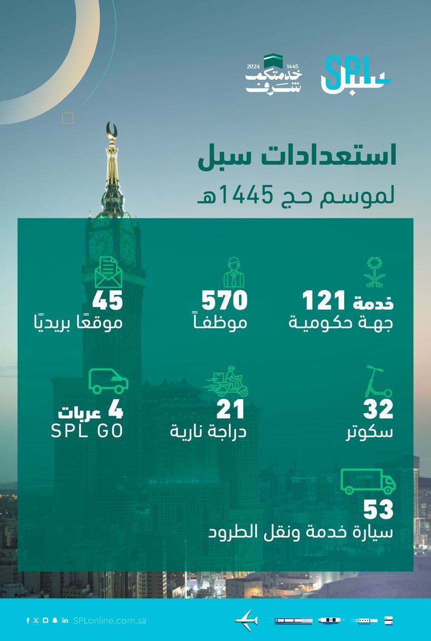 ويقدم البريد السعودي خلال موسم حج هذا العام خدماته لـ 121 جهة حكومية عبر خدمة البريد الرسمي، وتواجد 570 موظفاً و 4 عربات SPL GO ، و53 سيارة خدمة ونقل الطرود، فضلاً عن 21 دراجة نارية و 32 سكوتر في المشاعر المقدسة لتسهيل سرعة التنقّل ، بالإضافة إلى 45 منفذ بيع في المشاعر المقدسة ومكة المكرمة.
