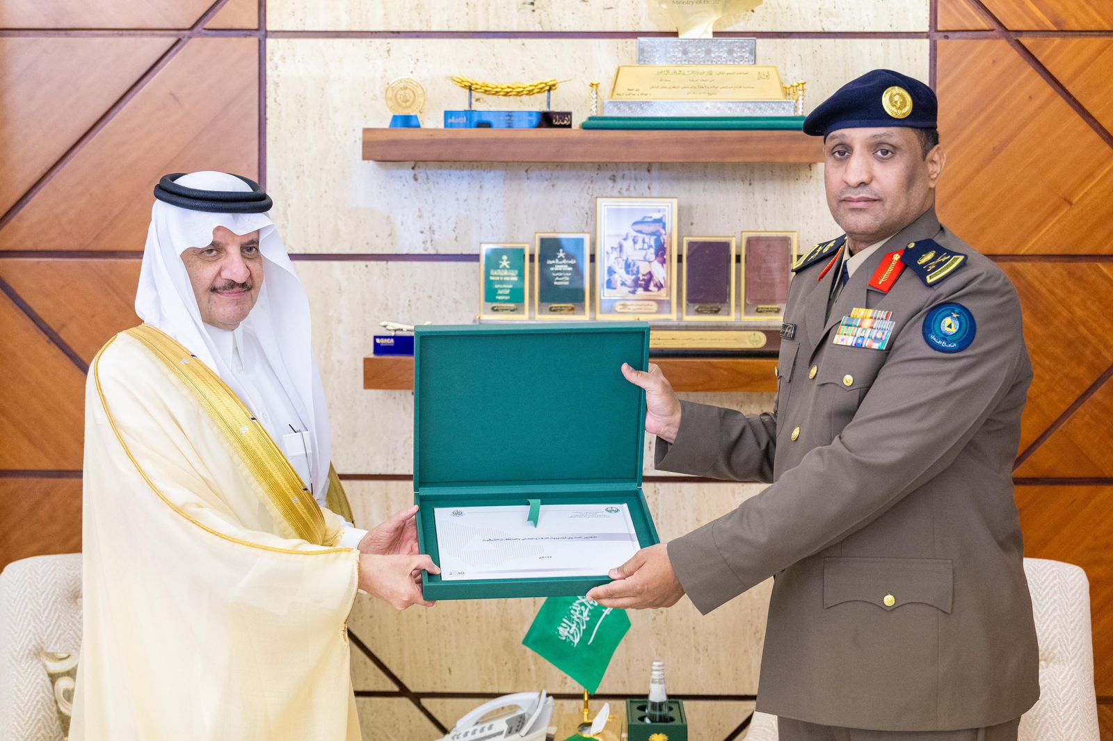 ورفع الموزان الشكر لسمو أمير المنطقة الشرقية على دعمه واهتمامه بأعمال الدفاع المدني بالمنطقة.