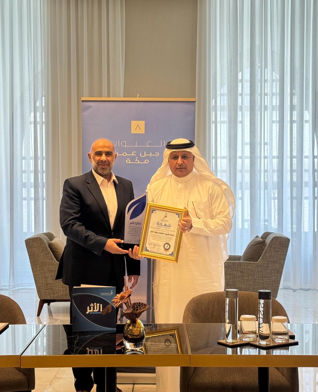 كرم المدير التنفيذي بتراحم مكة المكرمة الأستاذ وليد خضر الأحمدي فندق العنوان جبل عمر نظير مشاركتهم لتقديم الدعم لأعمال اللجنة وخدمة المستفيدين وكذلك لجهودهم بإبراز جهود وأعمال اللجنة للمجتمع وذلك من خلال زيارة مقر فندق العنوان .