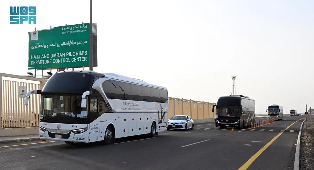 قوافل الحجيج تغادر المدينة المنورة يومياً في طريقهم إلى المسجد الحرام والمشاعر المقدسة بمكة المكرمة