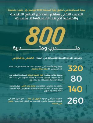كشفت المؤسسة العامة للتدريب التقني عن جاهزيتها لمشاركة 800 متدربا ومتدربة يمثلون 20 فرقة كشفية وتطوعية من مختلف الكليات التقنية للبنين والبنات والمعاهد الصناعية بالمملكة للمشاركة في البرامج التطوعية والكشفية لخدمة ضيوف الرحمن لحج هذا العام 1445هـ بمكة المكرمة والمشاعر المقدسة والمدينة المنورة والمنافذ الحدودية والمدن المؤدية إلى طريق الحج.