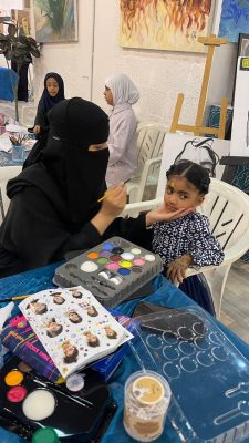 الرسم والخط والرسم على الوجه وفن الكروشيه والنقش بالحناء والمرسم الصغير والمعرض الفني الذي ضم أكثر من 50 لوحة فنية لعدة فنانات
