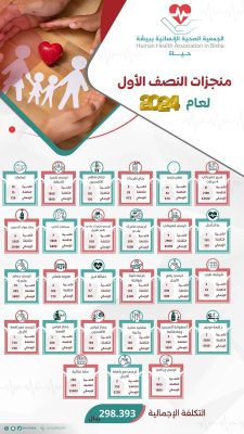 من جهةٍ أخرى أعلنت جمعية حياة عن منجزات النصف الأول لعام 2024 شملت تقديم 396 خدمة للمستفيدين بتكلفة بلغت 298 ألف ريال.