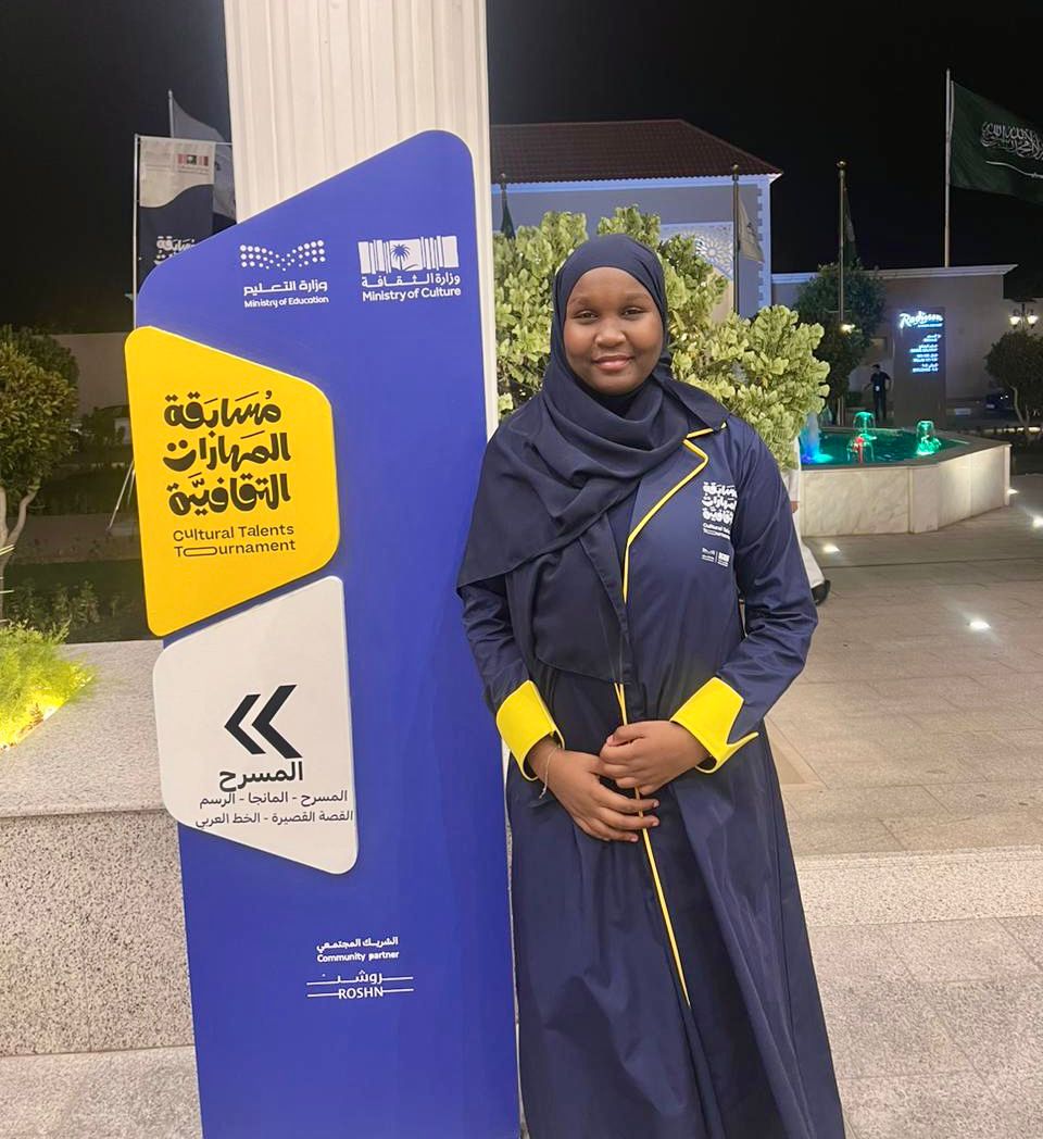 – درر علي الغامدي من مدرسة الشيماء بنت الحارث في الباحة المركز الأول في مجال الرسم.