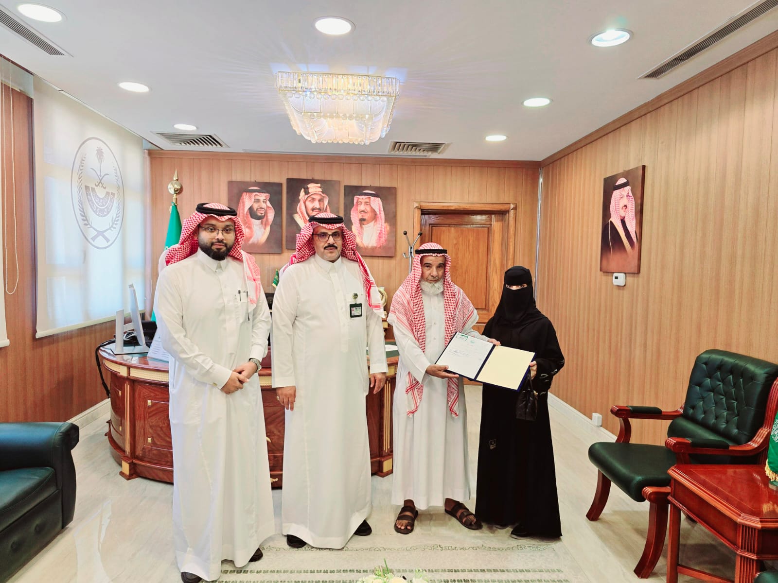 تنفيذاً لتوجيه أمير منطقة عسير الأمير تركي بن طلال يحفظه الله قام سعادة وكيل محافظة محايل الأستاذ سعد بن راشد آل ناشع صباح اليوم بتسليم طالبة التمريض خديجة زاهر عسيري خطاب شكر وتقدير من لدن سموه الكريم نظير العمل البطولي والإنساني النبيل الذي قامت به بتقديم الاسعافات الأولية العاجلة لمصاب تعرض لحادث دهس على الحزام الدائري بالمحافظة قبل وصول الفرق الإسعافية الى الموقع بحضور والدها ومدير فرع الهلال الأحمر السعودي الأستاذ إبراهيم عبدالعلام الفلقي،