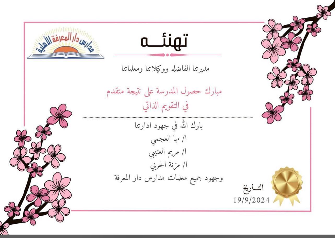 نبارك لكم هذا الإنجاز المتميز الذي يعكس الجهود الكبيرة التي بذلتها الإدارة الموقرة، ممثلة بـ: أ/مها العجمي
