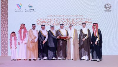 رعى صاحب السمو الملكي الأمير سعود بن طلال بن بدر محافظ الأحساء الرئيس الفخري للجمعية الخيرية لتحفيظ القرآن الكريم بمحافظة الأحساء ، حفل تكريم طلاب حلقات مجمع عبدالعزيز بن سليمان العفالق وإطلاق الخطة الاستراتيجية للمجمع ،أقيم الحفل مساء يوم ” الإثنين” في قاعة فندق الأحساء إنتركونتيننتال ، بحضور رئيس الجمعية ناصر بن محمد النعيم، وأعضاء مجلس إدارة الجمعية، وعدد من أصحاب السمو والفضيلة والسعادة ، ومسؤولي الجهات الحكومية ورجال الأعمال والأعيان في المحافظة.