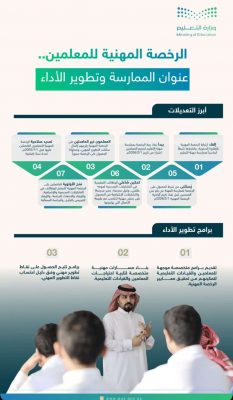 وأبانت “التعليم” أن الفرصة متاحة للمعلمين والمعلمات الذين لم يحصلوا على الرخصة المهنية لمعالجة أوضاعهم، وذلك بتسهيل إجراءات تسجيلهم في اختبارات الحصول على الرخصة، إلى جانب إعطائهم الأولوية بإتاحة فرصتين على الأقل سنويًا لكل اختبار، وذلك بما يمكّنهم من مواكبة التطورات في مجال التعليم.
