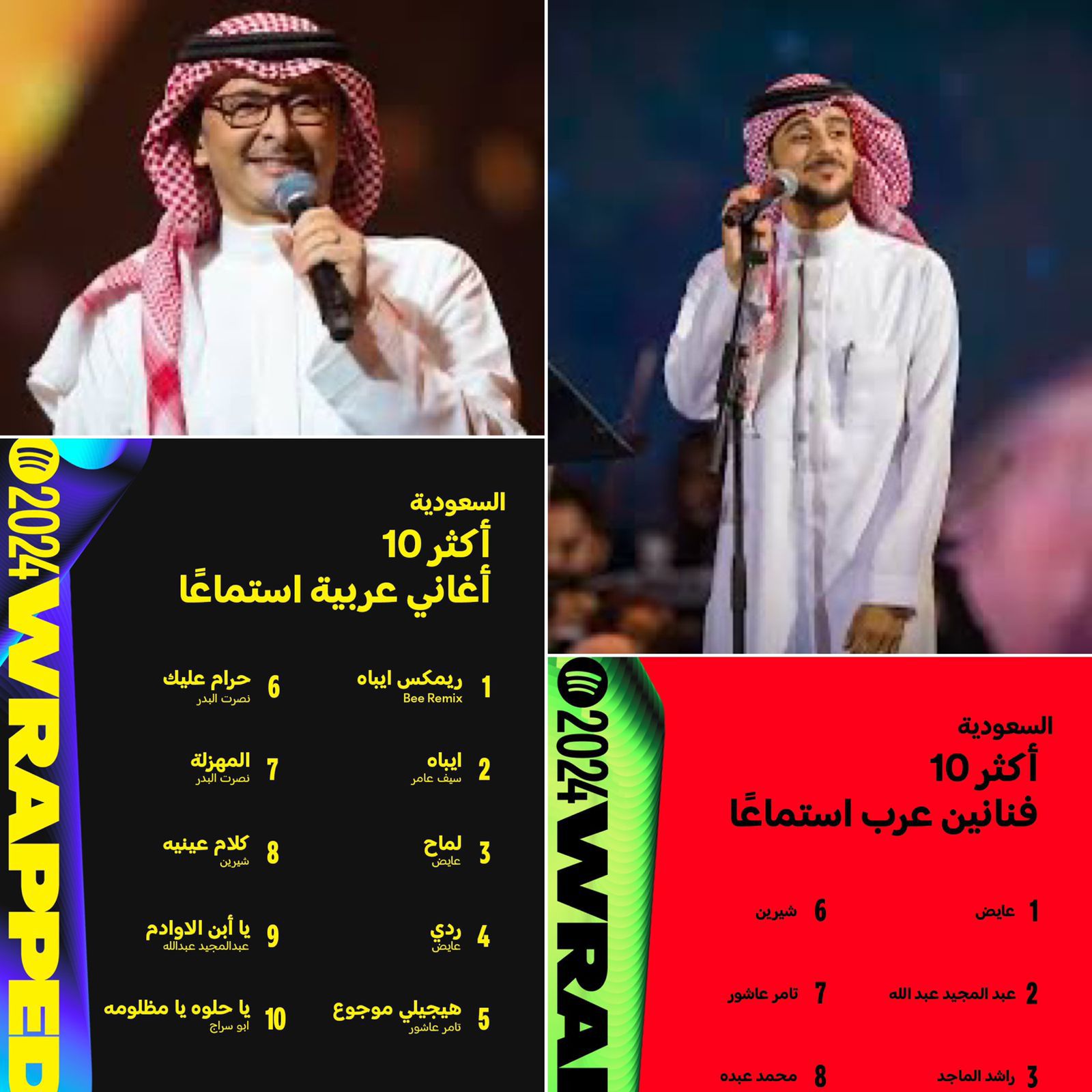 ووفقاً للتقرير؛ حل عايض على رأس قائمة Spotify للفنانين العرب الأكثر استماعاً في المملكة للعام 2024؛ وبذلك يحقق عايض الذي يمثل صوت جيله يحقق لأول مرة لقب أفضل فنان عربي في ملخص Wrapped من Spotify لسنة ٢٠٢٤ في السعودية.