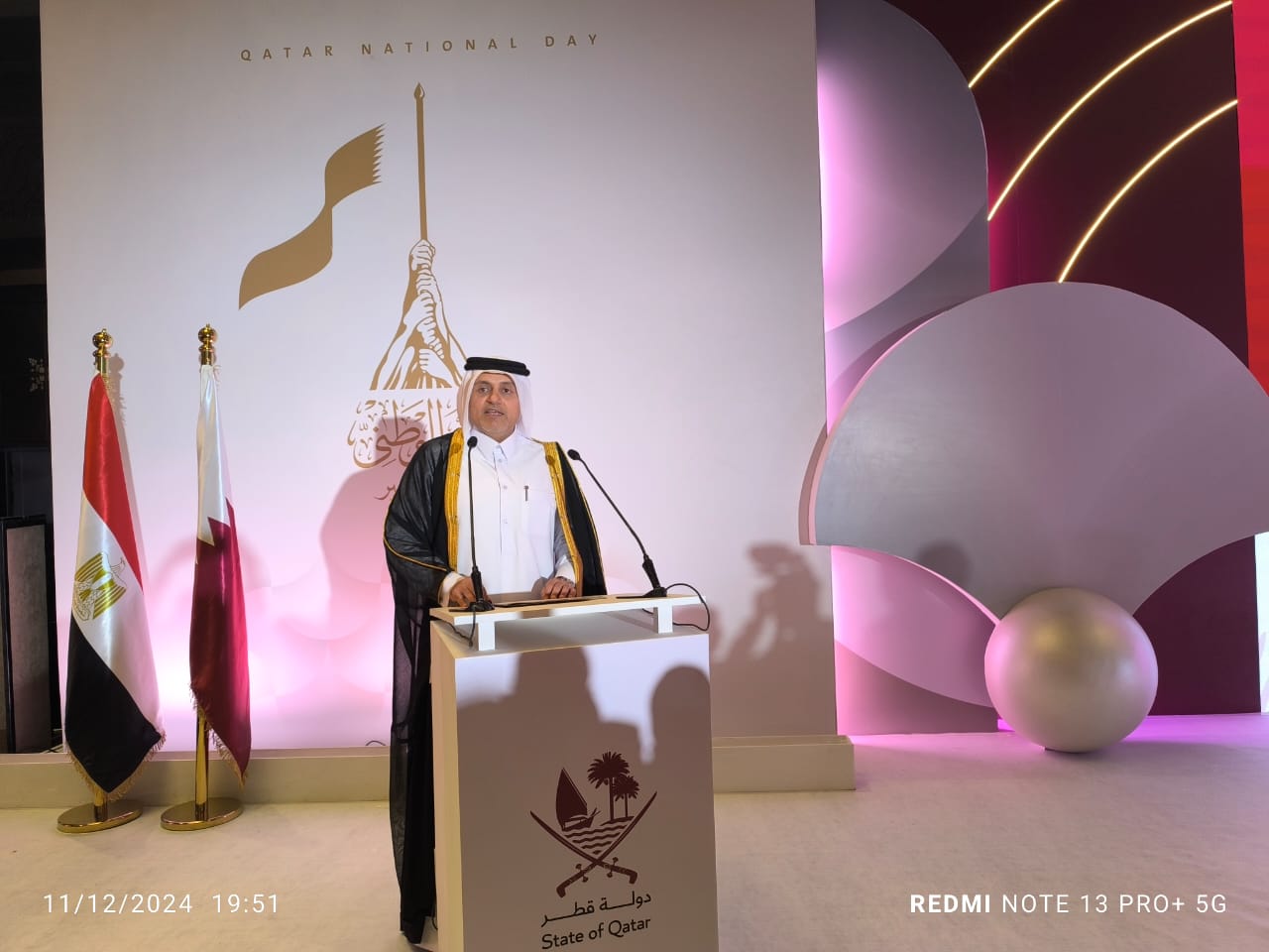 إن من دواعي سروري وفخري أن يضم احتفالنا الليلة، باليوم الوطني لدولة قطر، هذه الكوكبة من الوزراء والسفراء والشخصيات العامة والصحفيين والإعلاميين، هذا اليوم الذي يوافق 18 ديسمبر من كل عام يعد بمثابة تذكير سنوي بالقيم الأساسية للبلاد والولاء الوطني والتضامن والفخر بها؛ فهو يوم لاستقاء الإلهام من ماضينا العريق والاحتفال بحاضرنا المشرف والتطلع إلى مستقبل مشرق يحافظ على تراثنا وهويتنا العربية تحت القيادة الرشيدة لسيدي حضرة صاحب السمو الشيخ تميم بن حمد آل ثاني أمير البلاد المفدى، حفظه الله.