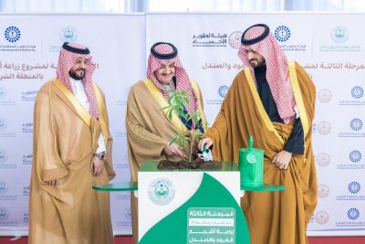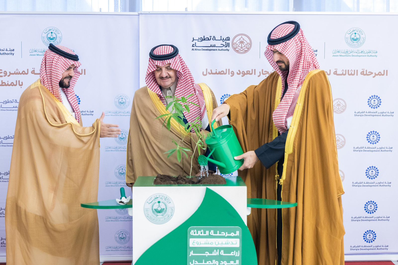 دشن صاحب السمو الملكي الأمير سعود بن نايف بن عبدالعزيز أمير المنطقة الشرقية بديوان الإمارة اليوم الأربعاء، وبحضور صاحب السمو الملكي الأمير سعود بن بندر بن عبدالعزيز نائب أمير المنطقة الشرقية، زراعة أشجار ” الصندل” في المنطقة الشرقية بغرس أول شتلة صندل بالمنطقة الشرقية وذلك ضمن المرحلة الثالثة للمشروع والتي تم تدشينها من قبل صاحب السمو الملكي الأمير عبدالعزيز بن سعود بن نايف وزير الداخلية رئيس مجلس إدارة هيئة تطوير وتعمير المناطق الجبلية بجازان في وقت سابق.