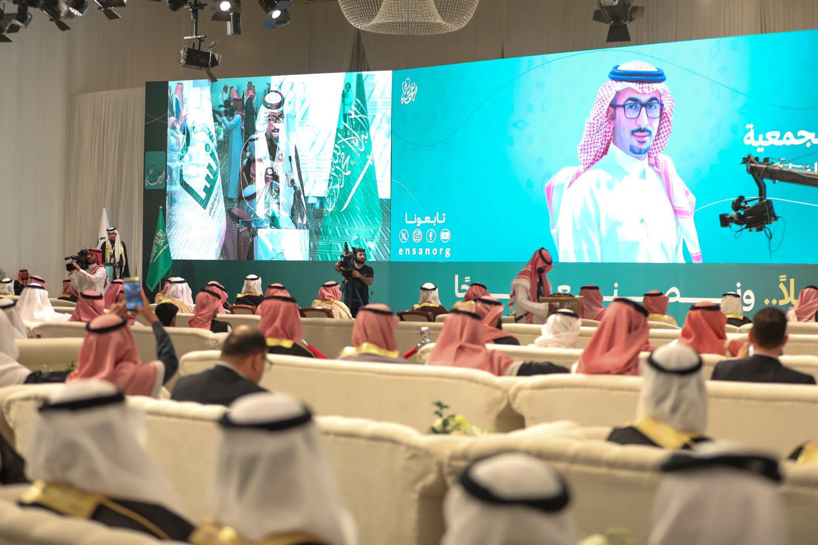 تلا ذلك فلم تعريفي عن جمعية إنسان ودورها في تمكين الأيتام من الزواج لتحقيق الاستقرار النفسي والاجتماعي لهم عبر 21 فرعاً في الرياض ومحافظاتها .