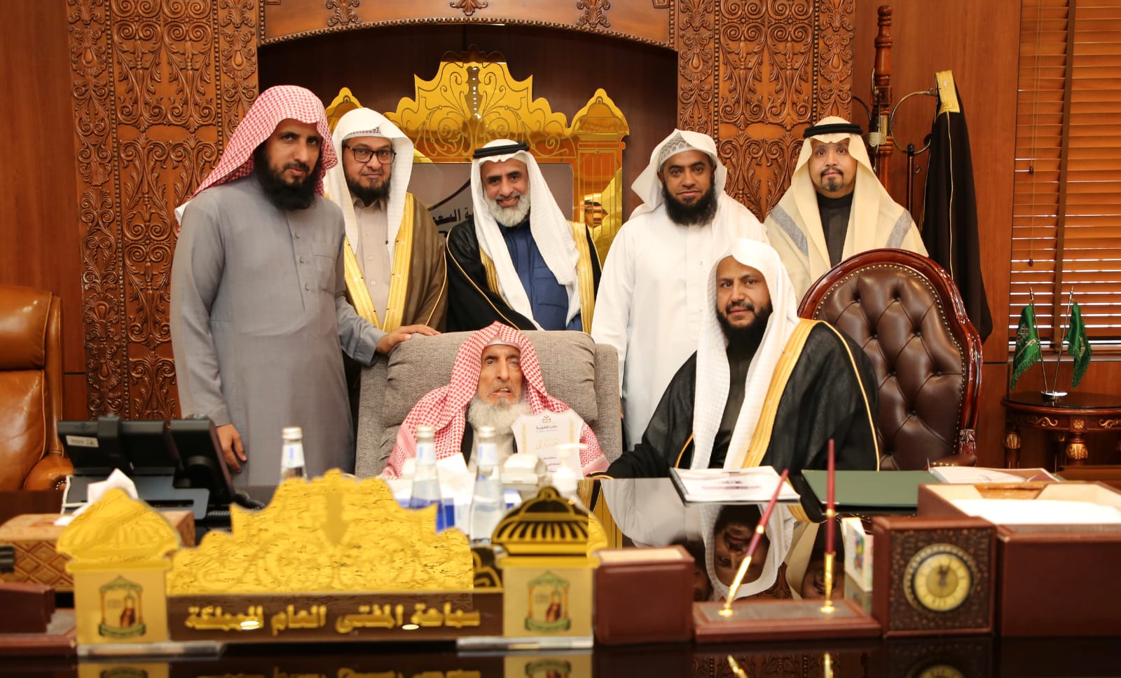 استقبل سماحة مفتي عام المملكة، رئيس هيئة كبار العلماء، والرئيس العام للبحوث العلمية والإفتاء، الشيخ عبدالعزيز بن عبدالله آل الشيخ، في مكتبه بالرئاسة العامة، رئيس مجلس إدارة جمعية ساعد القانونية لخدمة الأرامل والأيتام، الدكتور علي الشويش، يرافقه أعضاء مجلس إدارة الجمعية.