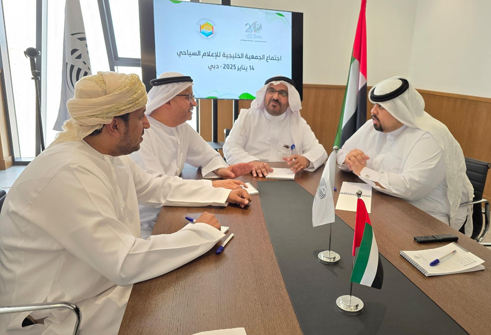 عقدت الجمعية الخليجية للإعلام السياحي اجتماعها الثاني في مقر جمعية الصحفيين بدولة الامارات وذلك على هامش احتفالات الجمعية بمناسبة مرور 25 عامًا على تأسيسها. وتم خلال الاجتماع الذي عقد يوم الثلاثاء الموافق 14 يناير 2025 مناقشة خطط عمل الجمعية لعام 2025 بإطلاق حملات إعلامية تدعم السياحة الخليجية، والمساهمة الفاعلة في تأهيل وتدريب الصحفييين الخليجيين لتفعيل دور الإعلام السياحي في الصحف الخليجية، وتعزيز التعاون مع الجهات الحكومية على المستوى الخليجي وعقد الشراكات مع القطاع الخاص بما يعود على تحقيق أهداف الجمعية.