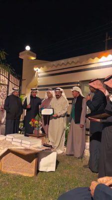 قامات اهالي العمران يتوافدون حتى امتلأ المكان ، وأعلن الأستاذ احمد الإبراهيم موعد الحفل بكلمات الشكر والثناء للضيف ولجميع الحاضرين .