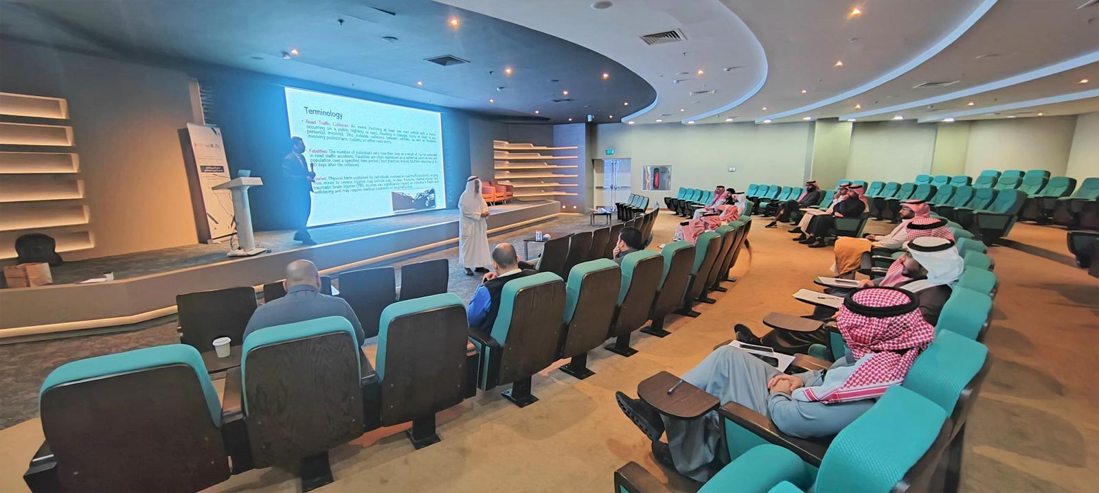 وأوضح الدكتور عبد الحميد المعجل، المشرف على الكرسي بأن كرسي أرامكو للسلامة المرورية بجامعة الإمام عبدالرحمن بن فيصل، أطلق بالتعاون مع مؤسسة أبحاث إصابات المرور«TIRF» في كندا، وهي مؤسسة دولية تأسست عام 1963 ومعترف بها دولياً كمؤسسة بحث علمي مستقلة مهتمة بإجراء بحوث علمية حول سلوكيات مستخدمي الطريق ونقل المعرفة بين المتخصصين، دورة تدقيق سلامة الطرق لمدة 10 أيام يمنح المشاركين شهادة معتمدة ومعترف بها دوليا يسمح لمن تجاوز الاختبارات اثناء ونهاية الدورة، صفت عضو مراقب في فريق تدقيق سلامة الطرق، ومسؤولا عن مساعدة قائد فريق التدقيق في فحص الرسومات التصميمية للطرق والتقاطعات بدقة و فحص الموقع (ليلاً ونهارًا)، ومساعدة قائد الفريق في إكمال عملية التدقيق في الوقت المناسب وبطريقة احترافية، مشيراً بان هذه الدورة تضاف الى سلسلة دورات يقوم بها الكرسي من اجل تقديم معارف علمية جديدة تتعلق بسلامة الطرق، يقدمها خبراء ومختصون في المجال.