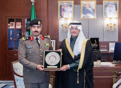 جاء ذلك خلال استقبال سموّه مدير شرطة المحافظة اللواء سطام بن زياد العتيبي يرافقه مساعد مدير شرطة المحافظة العقيد فهد المطيري ، مقدماً سموّه شكره للواء العتيبي نظير جهوده التي بذلها خلال فترة عمله بالمحافظة ، سائلاً الله له التوفيق والسداد في عمله القادم