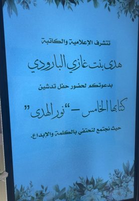بحضور نخبة من الشخصيات الهامة وممثلين عن جهات رسمية، دشّنت الإعلامية السعودية هدى بنت غازي البارودي، سفيرة الإعلام، كتابها الخامس “نور الهدى”، في حفل مميز يعكس ثراء الثقافة السعودية وحضورها العالمي.
