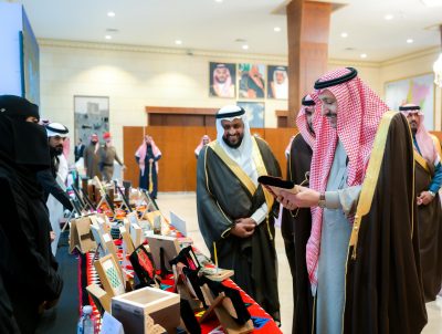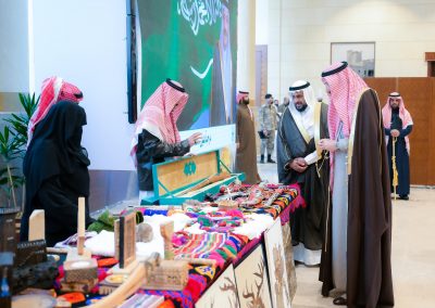 وشاهد سموه عدد من معروضات الحرف اليدوية التي تشتهر بها المنطقة مثل السدو، والأعمال الخشبية، والنقوش التقليدية، والمجسمات التراثية واستخدامات قوالب شمع العسل، والتي تميزت بالجودة التي تعكس الهوية الثقافية الغنية لمنطقة الباحة بما يحقق أهداف رؤية السعودية 2030 وبما يتواكب مع عام الحرف اليدوية 2025 .