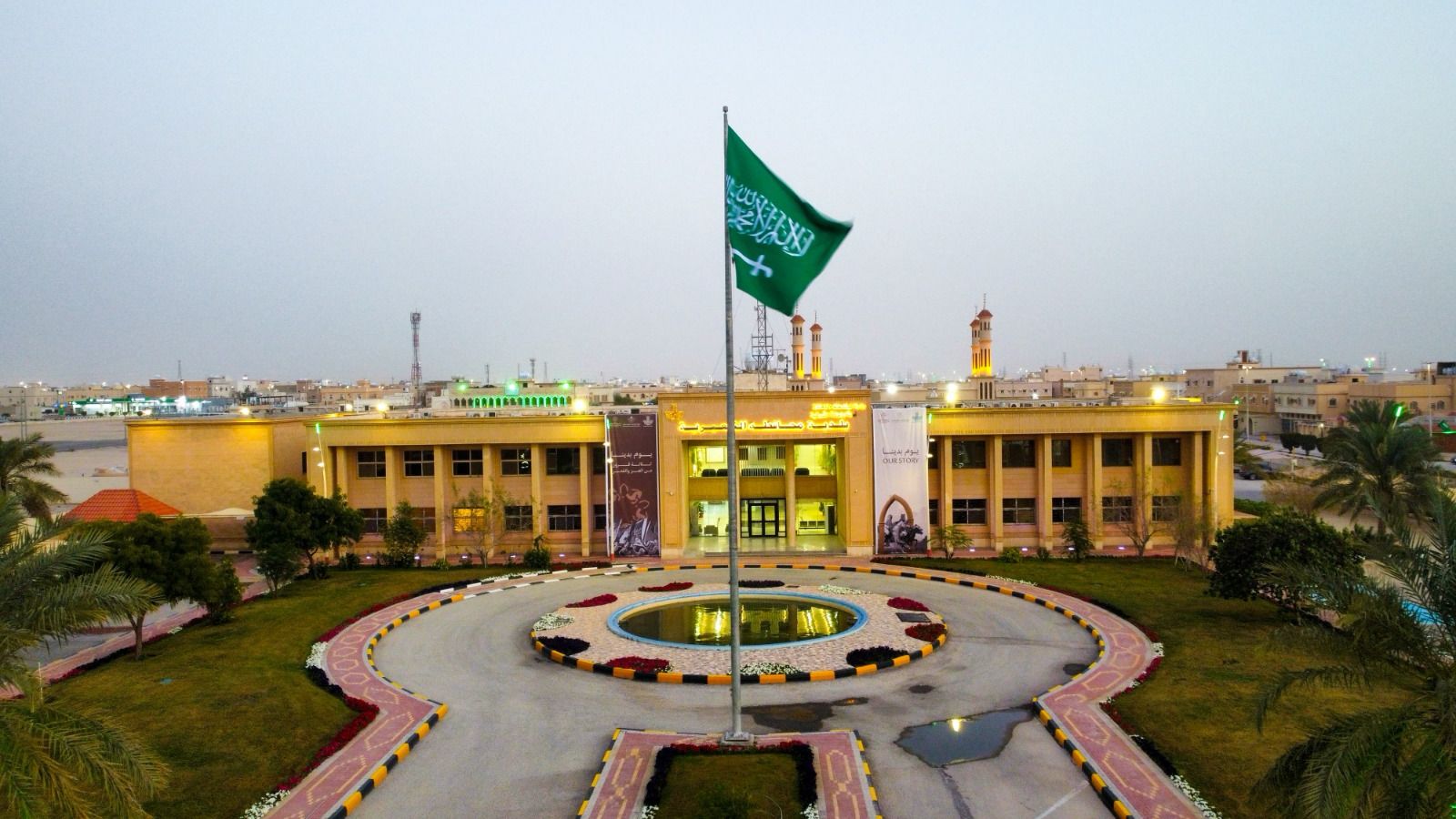 وتضمنت التجهيزات، تركيب أكثر من 16000 علم، بالطرق والميادين، وأكثر من 2800 بنر يحمل هوية يوم التأسيس، ويحاكي قصته، موزعة على طرق وشوارع مدن ومحافظات المنطقة، بالإضافة إلى 100 مجسمًا جماليًا، وتوزيع أكثر من 500 سارية مع تزيين وإضاءة مباني الأمانة والبلديات التابعة والمرتبطة.